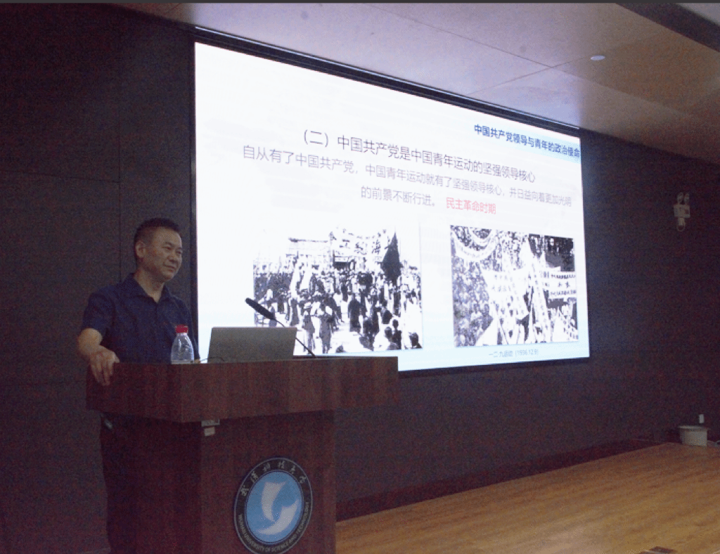 党史、校史专家张继才教授以《百年艰苦奋斗、百年薪火相传——武科大百年历史文化积淀及启示》为题,为毕业生党员生动的介绍了武汉科技大学的校史,他从张之洞与我校的关系讲起,将校史追溯到清末,通过一张张图片为大家详细地介绍了我校的百年历史。他的讲授让党员们又一次深入的走进了学校发展的历史长河中,铭记先辈先贤的拳拳爱国之心,激发了青年学生的科技报国之志,在新征程上永记母校教诲,为工业发展贡献力量。