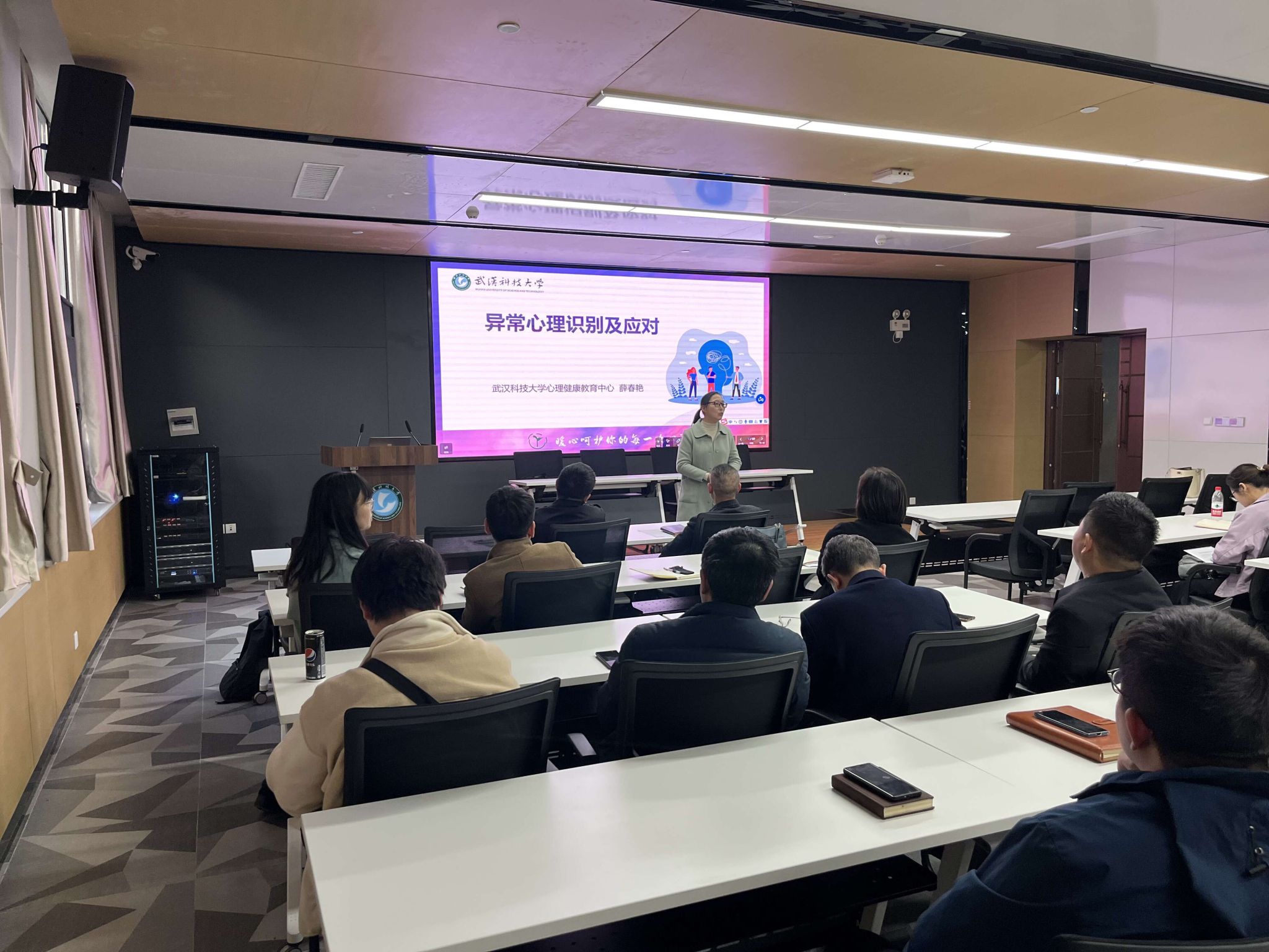 为增强学院心理健康教育工作成效,提升教师心理健康工作能力。11月23日下午,化工学院在青山校区图书馆路演厅举办了教师心理健康教育能力提升培训讲座。武汉科技大学心理健康教育中心副主任薛春艳教授以“异常心理识别及应对”为主题进行专题培训。学院领导班子成员、研究生导师、班主任及管理人员参加。讲座由学院党委副书记余婷主持。