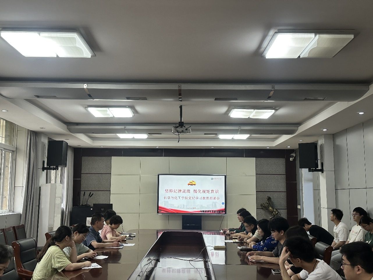 4月28日上午,化工学院在教二楼2205召开党纪学习教育动员部署会暨首场专题党课。学院领导班子成员,各党支部书记,师生党员代表参加会议。学院党委书记刘抗强主持会议。