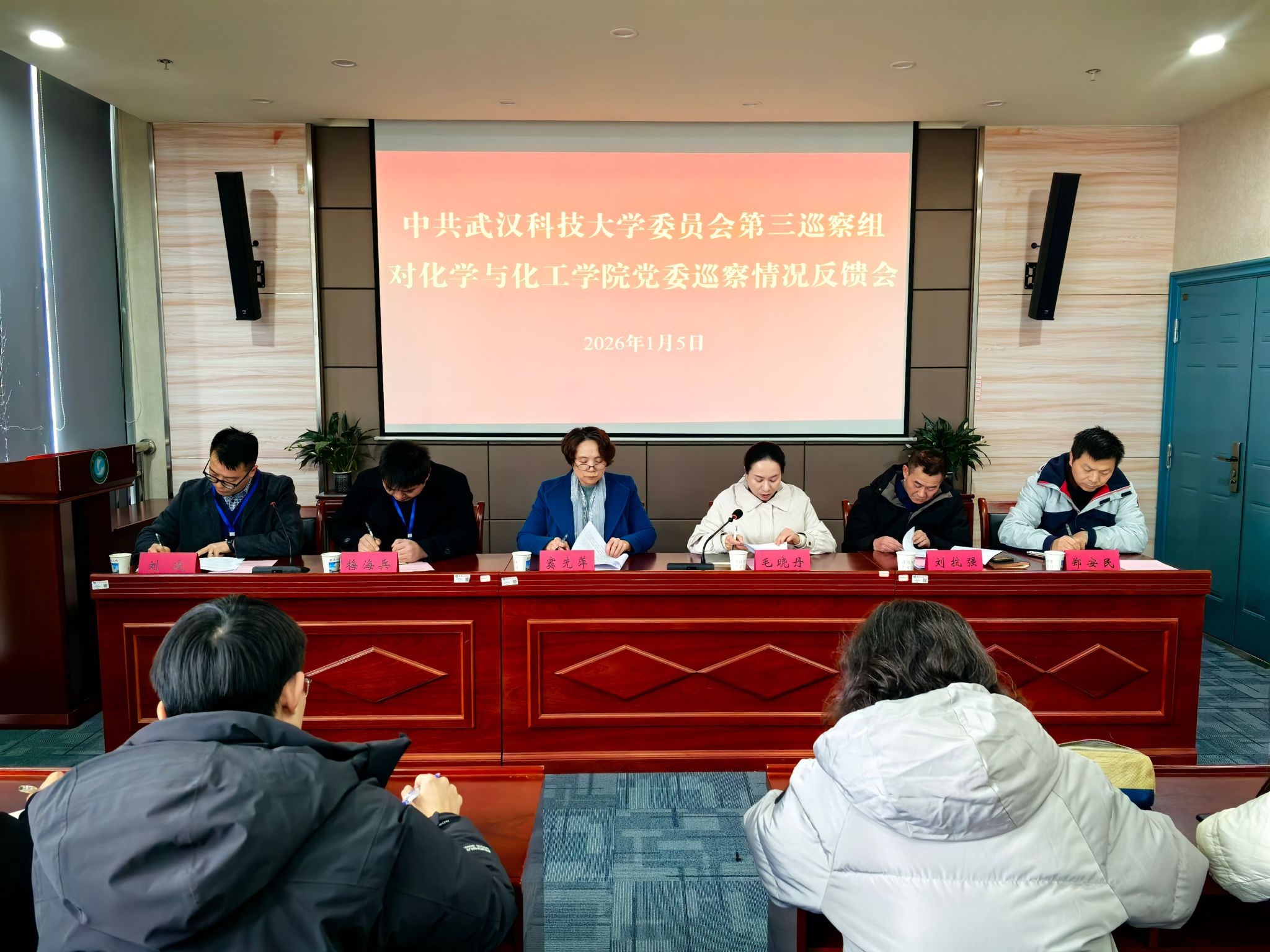 根据校党委巡察工作统一部署,1月5日下午,校党委第三巡察组向威廉官网中国官方网站党委反馈巡察情况。校党委常委、纪委书记、监察专员、党委巡察工作领导小组副组长窦先萍出席会议并讲话,校党委第三巡察组组长毛晓丹宣读反馈意见,威廉官网中国官方网站党委书记刘抗强作表态发言,校党委第三巡察组副组长刘波主持会议。