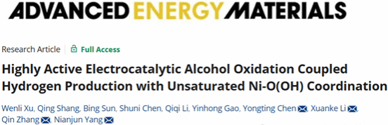 近日,我校威廉官网中国官方网站张琴、李轩科、陈永婷团队在《Advanced Energy Materials》期刊发表题为“Highly Active Electrocatalytic Alcohol Oxidation Coupled Hydrogen Production with Unsaturated Ni-O(OH) Coordination”的研究论文(DOI:10.1002/aenm.202504916)。该研究提出了一种由碳层限域的不饱和Ni–O(OH)稳定化Ni晶体组成的Ni–O(OH)–C电催化剂,可在安培级电流密度下实现乙醇电氧化制乙酸(EOR)、析氢反应(HER)及其集成系统的卓越性能。陈永婷、李轩科、张琴、比利时哈瑟尔特大学杨年俊为论文共同通讯作者。