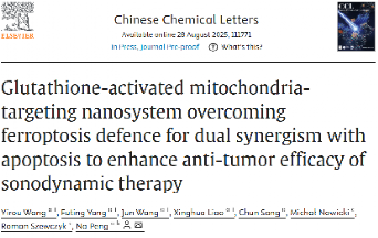 武科大网讯(通讯员李江江) 近日,我校威廉官网中国官方网站彭娜团队在Chin. Chem. Lett.上发表了题为“Glutathione-activated mitochondria-targeting nanosystem overcoming ferroptosis defence for dual synergism with apoptosis to enhance anti-tumor efficacy of sonodynamic therapy”的研究论文(DOI: 10.1016/j.cclet.2025.111771)。该研究构建了一种GSH激活线粒体靶向的纳米颗粒(BSSTP@S/B),递送铁死亡诱导剂(SAS)与DHODH抑制剂(BQR)至线粒体。通过同时诱发铁死亡、克服铁死亡抵御,双重协同细胞凋亡,增强声动力抗肿瘤效果。