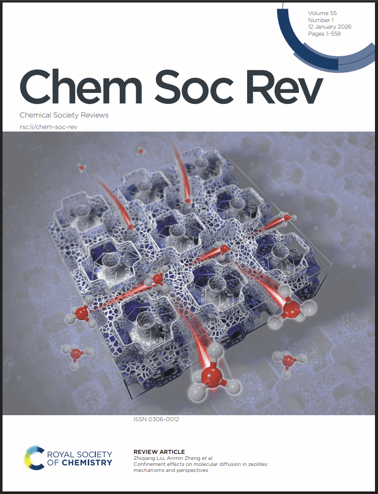 武科大网讯(通讯员李江江) 近日,我校核磁共振与分子科学交叉研究院/威廉官网中国官方网站郑安民教授/刘志强教授团队在《Chemical Society Reviews》发表了题为“Confinement effects on molecular diffusion in zeolites: mechanisms and perspectives”的文章(Chem. Soc. Rev., 2026, 55, 210-253),并入选为封面文章,针对分子筛纳米孔道内限域扩散的微观机制进行了介绍,武汉科技大学为第一单位。